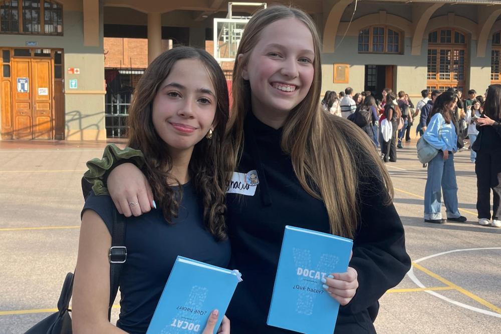 Las estudiantes Paula García e Ignacia Figueroa (I medio B) presentaron el proyecto “Llamados a guiar: liderazgo con identidad”, que busca fortalecer el sentido de pertenencia y el liderazgo católico entre los alumnos de enseñanza media.