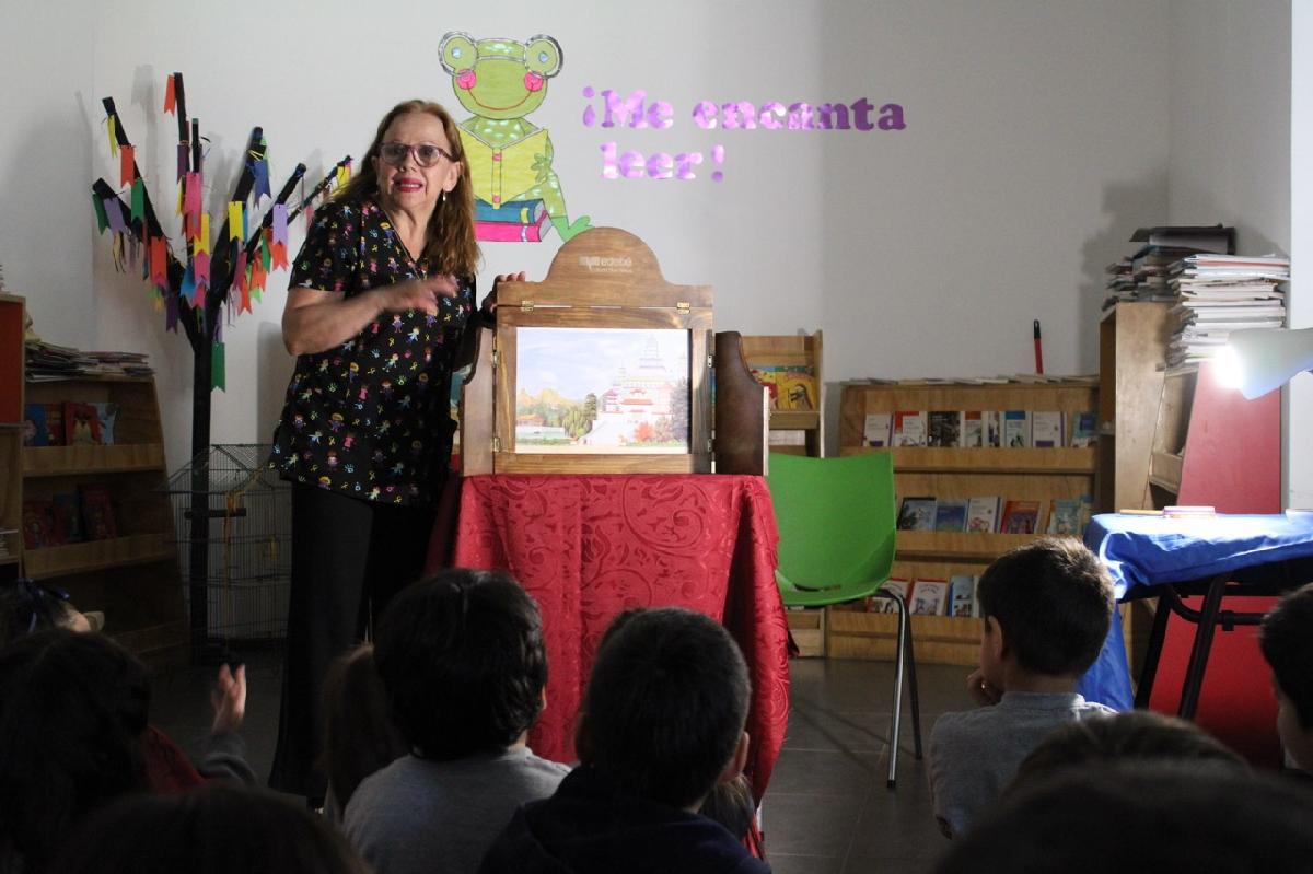 Durante la actividad, el equipo de bibliotecarias realizó un cuento cantado “Carvanalito del 100 pie” y luego, bajo la técnica de Kamishibai, el cuento “El Ruiseñor Chino”.