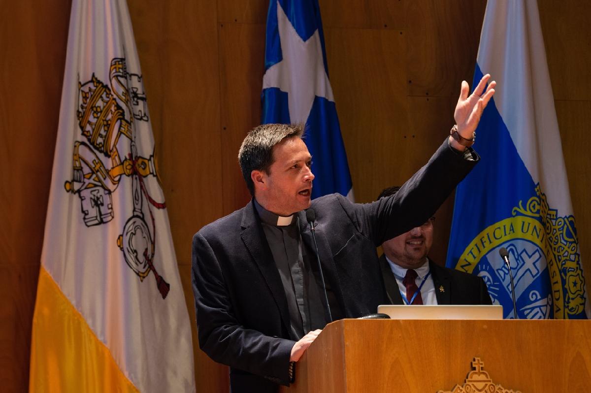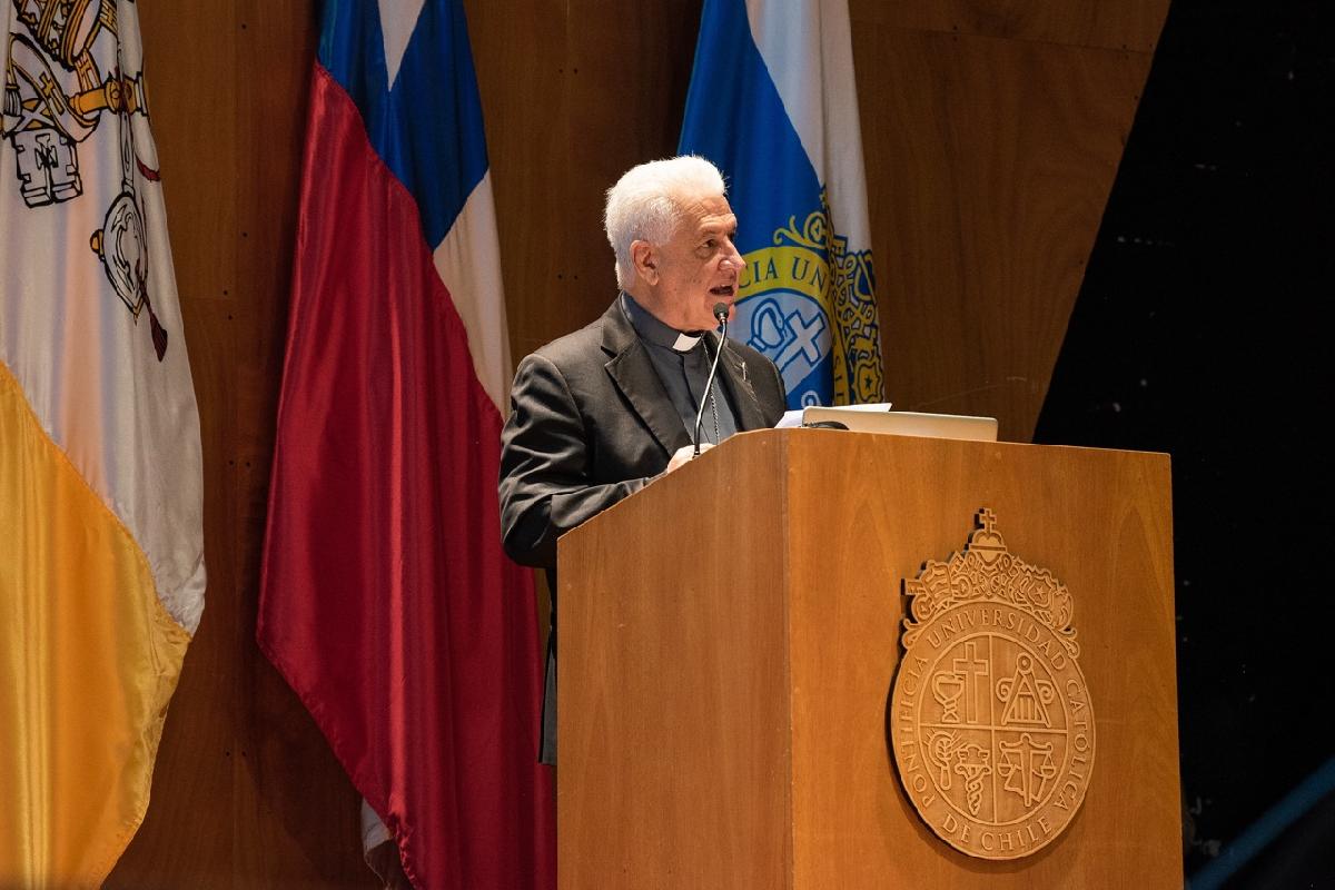 Posteriormente, Monseñor Alberto Lorenzelli, Obispo Auxiliar de Santiago, ofreció una conferencia donde enfatizó la necesidad de "educar desde la fe" como herramienta para humanizar la formación en el contexto actual.