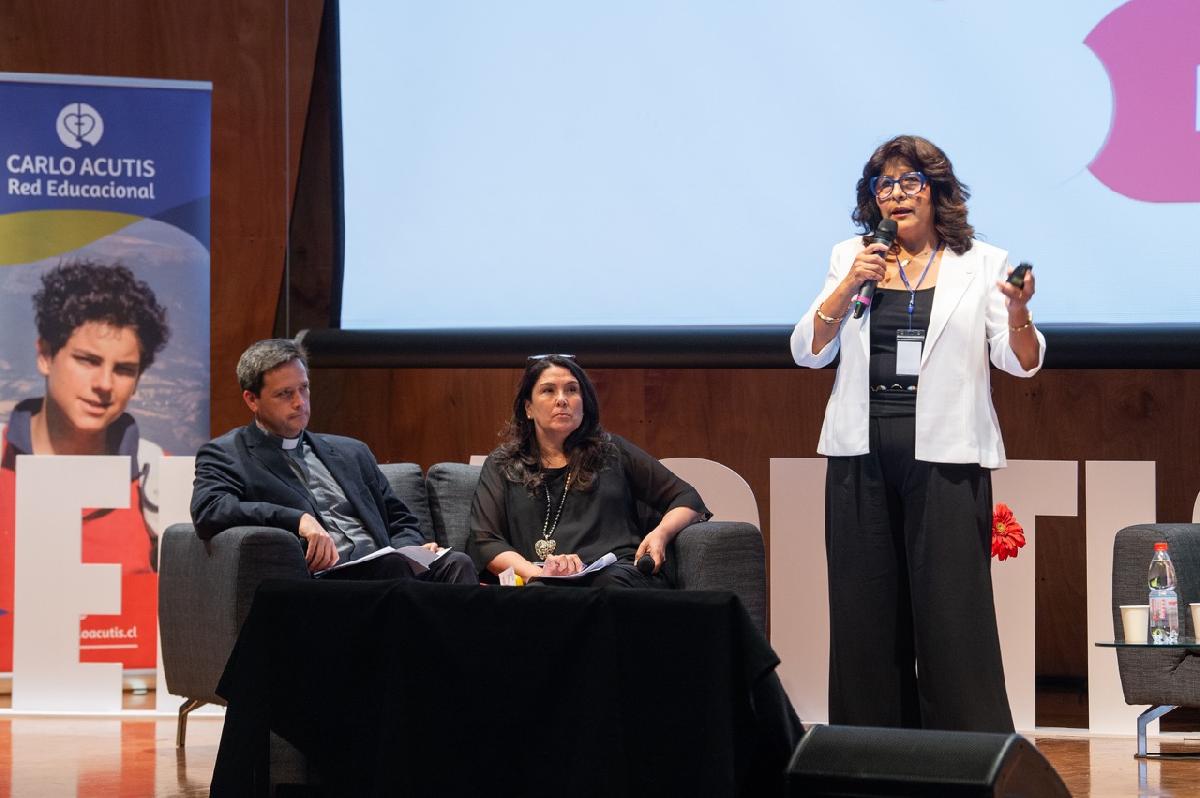 Por su parte, Sandra Urrutia Bravo, gerente general de Carlo Acutis Red Educacional, dio la bienvenida a los colegios y contextualizó los objetivos del Congreso: "Cuando nos planteamos la idea de esta actividad, nos preguntamos cuál es la experiencia de formación integral que les colegios quisieran compartir para dar a conocer a las demás instituciones. Hemos querido involucrar al mundo universitario para dialogar cuál es el tipo de profesores que queremos formar y que las universidades se nutran de lo que ocurre en nuestras aulas. Como educadores, estamos llamados a seguir siendo colegios extraordinarios y a poner, en el centro de nuestro quehacer, a quienes son la razón de ser de nuestros colegios y quienes nos motivan día a día: los estudiantes."