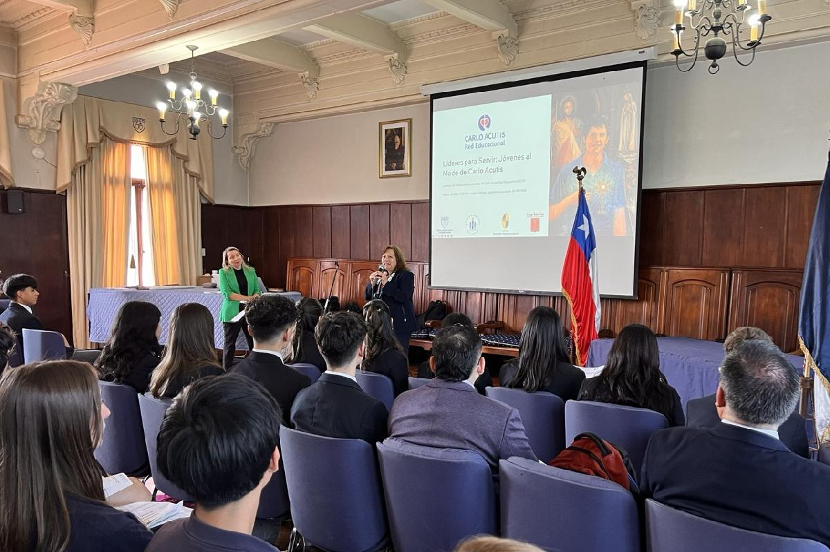 En un ambiente de entusiasmo, fraternidad y profundo sentido formativo, se desarrolló la Jornada de Centros de Estudiantes 2025 de Carlo Acutis Red Educacional, realizada en el Colegio Sagrados Corazones de Alameda, institución anfitriona. Bajo el lema “Líderes para servir: jóvenes al modo de Carlo Acutis”, participaron representantes de los cuatro colegios de la Red: Sagrados Corazones de Alameda, Instituto de Humanidades Luis Campino, Seminario Pontificio Menor y Colegio Notre Dame.